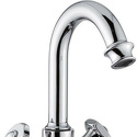 Назначение: для умывальника • Конструкция: двухрычажный • Монтаж: горизонтальный • Материал: латунь, покрытие - хром • Монтажные отверстия: 1 отверстие • Форма излива: традиционная • Душевая лейка в комплекте: нет • Донный клапан в комплекте: есть