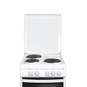 Тип варочной панели - Электрическая, Духовка - Есть, Тип духовки - Электрическая, Количество электрических конфорок - 3, Тип управления - Механическое, Максимальная потребляемая мощность - 5500, Термостат - Есть, Нагрев духового шкафа - Нижний, Материал рабочей поверхности - Эмаль, Подсветка духовки - Есть, Очистка духового шкафа - Традиционная, Полезный объем духового шкафа - 52, Гриль - Нет, Ближняя левая конфорка - 1000, Противни в комплекте - 1 шт., Ящик для посуды - Есть, Дальняя левая конфорка - 1500, Вес - 39.1, Решетки в комплекте - 1 шт., Ближняя правая конфорка - 1500, Дверца - Откидная, Высота - 85, Цвет - Белый, Дополнительная духовка - Нет, Глубина - 58.5, Ширина - 50