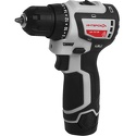 Тип: дрель-шуруповерт • Питание: от аккумулятора, Ni-Cd, 2 Ач, 12 В • Количество скоростей: 2 скорости • Максимальный крутящий момент: 17 Н*м • Тип патрона: быстрозажимной • Диаметр патрона: 10 мм • Максимальная скорость работы: 1100 об/мин • Блокировка кнопки включения: есть • Максимальный диаметр сверления: 25 мм (дерево), 10 мм (металл) • Реверс: есть • Вес: 1.25 кг