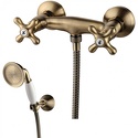 Назначение: душ • Конструкция: двухрычажный • Монтаж: вертикальный • Материал: покрытие - бронза • Подводка: жесткая • Монтажные отверстия: 2 отверстия • Душевая лейка в комплекте: есть • Держатель для душевой лейки: настенный держатель • Эксцентрики в комплекте: есть • Донный клапан в комплекте: есть