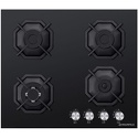 Поверхность: варочная панель • Тип поверхности: газовая • Рабочая поверхность: закаленное стекло • Число конфорок: 4 • Установка: независимая • Газовые конфорки: всего - 4 • Газ-контроль конфорок: есть • Тип управления: механическое • Переключатели: поворотные • Электроподжиг: есть, автоматический • Размеры: 590x515x51 мм • Размер ниши для встраивания: 560x485 мм • Цвет: панель - черный