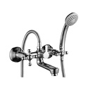 Термостат - Нет, Тип - Двухзахватный, Назначение - Универсальный, Присоединительный размер - 1\2", Форма излива - Традиционная, Количество монтажных отверстий - 2, Материал корпуса - Латунь, Длина излива - 417, Донный клапан - Нет, Поворотный излив - Да, Покрытие - Хром, Тип подводки - Жесткая, S-образные эксцентрики - Есть, Встраиваемый - Нет, Цвет - Серебристый, Аэратор - Есть, Комплектация - Держатель душевой лейки, душевой шланг, ручной душ