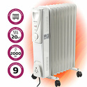 масляный радиатор • макс. мощность 2 кВт • 9 секций • встроенный вентилятор • колеса для перемещения • ручка • термостат • 405x240x545 мм • вес 6.4 кг